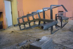 Während noch die letzten Fliesen herausgenommen wurden, wurde auch das Stahlgerüst der Kanzel abgebaut. Das massive Gerüst hätte wohl noch 100 weitere Jahre jedem Sturm getrotzt, so solide ist es gebaut.