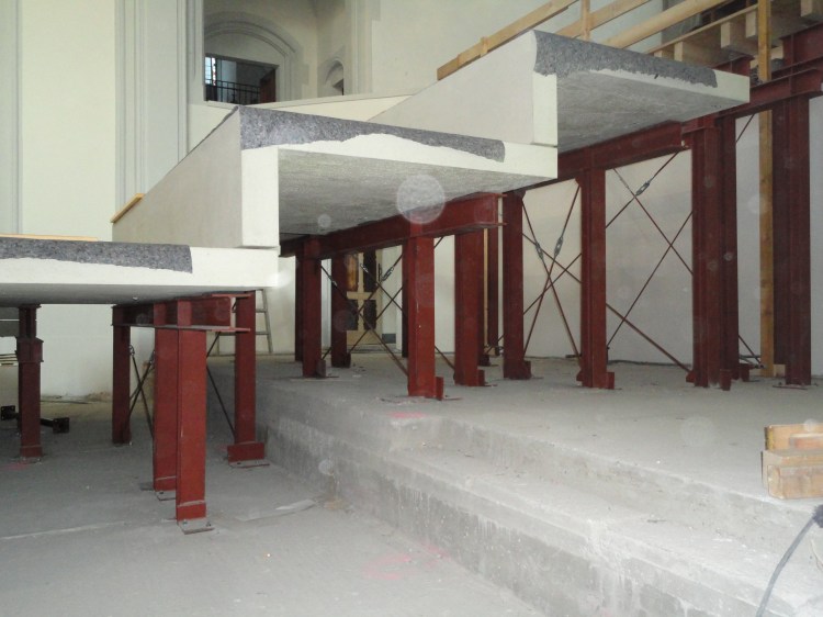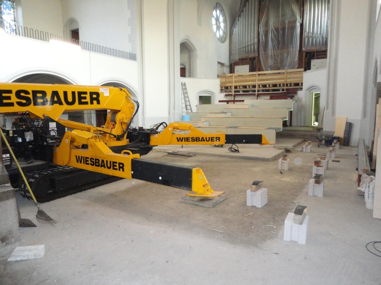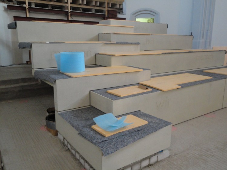 Und damit wird in diesen Tagen die Stufenanlage aufgebaut. So sieht’s im Moment in der Kirche aus: