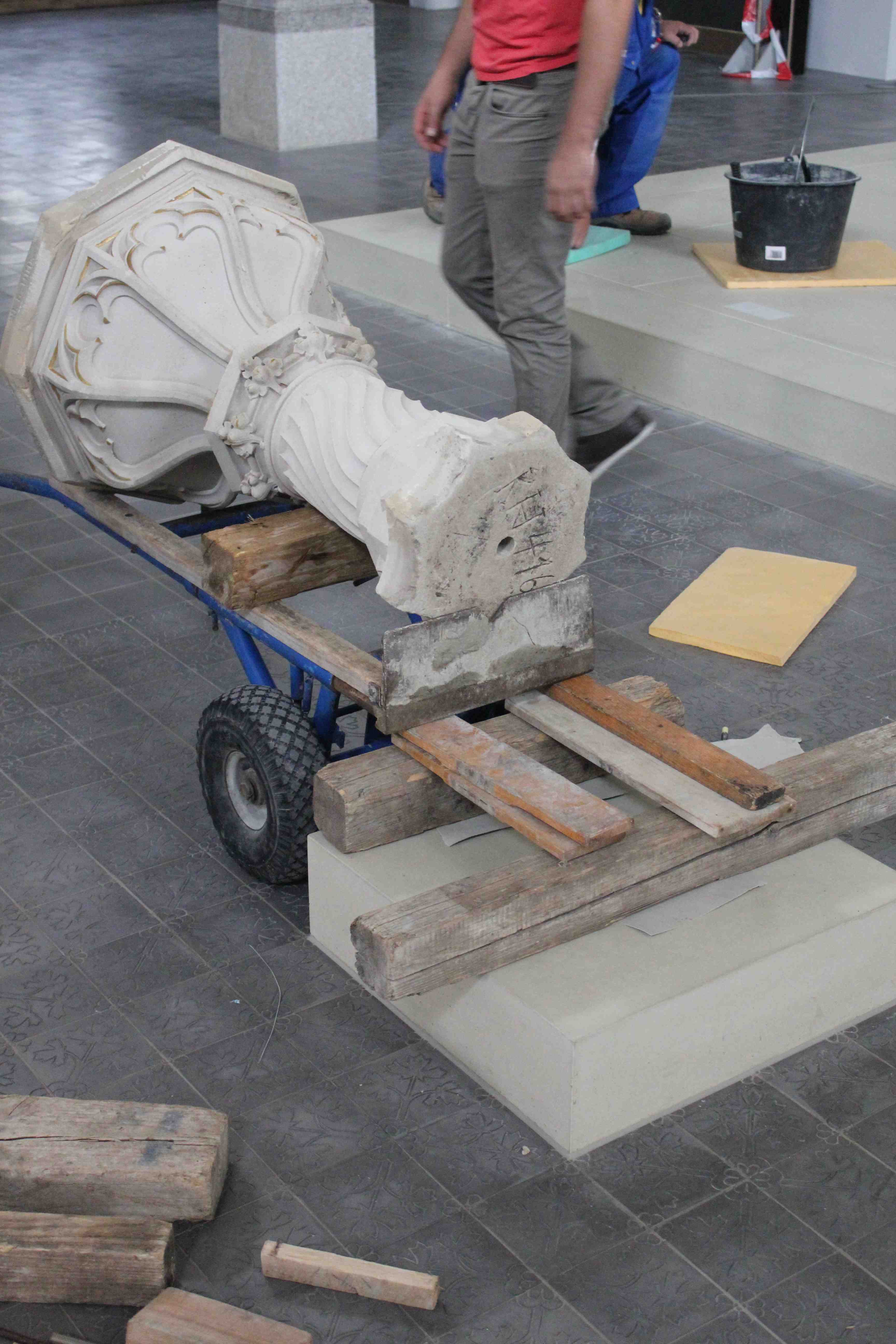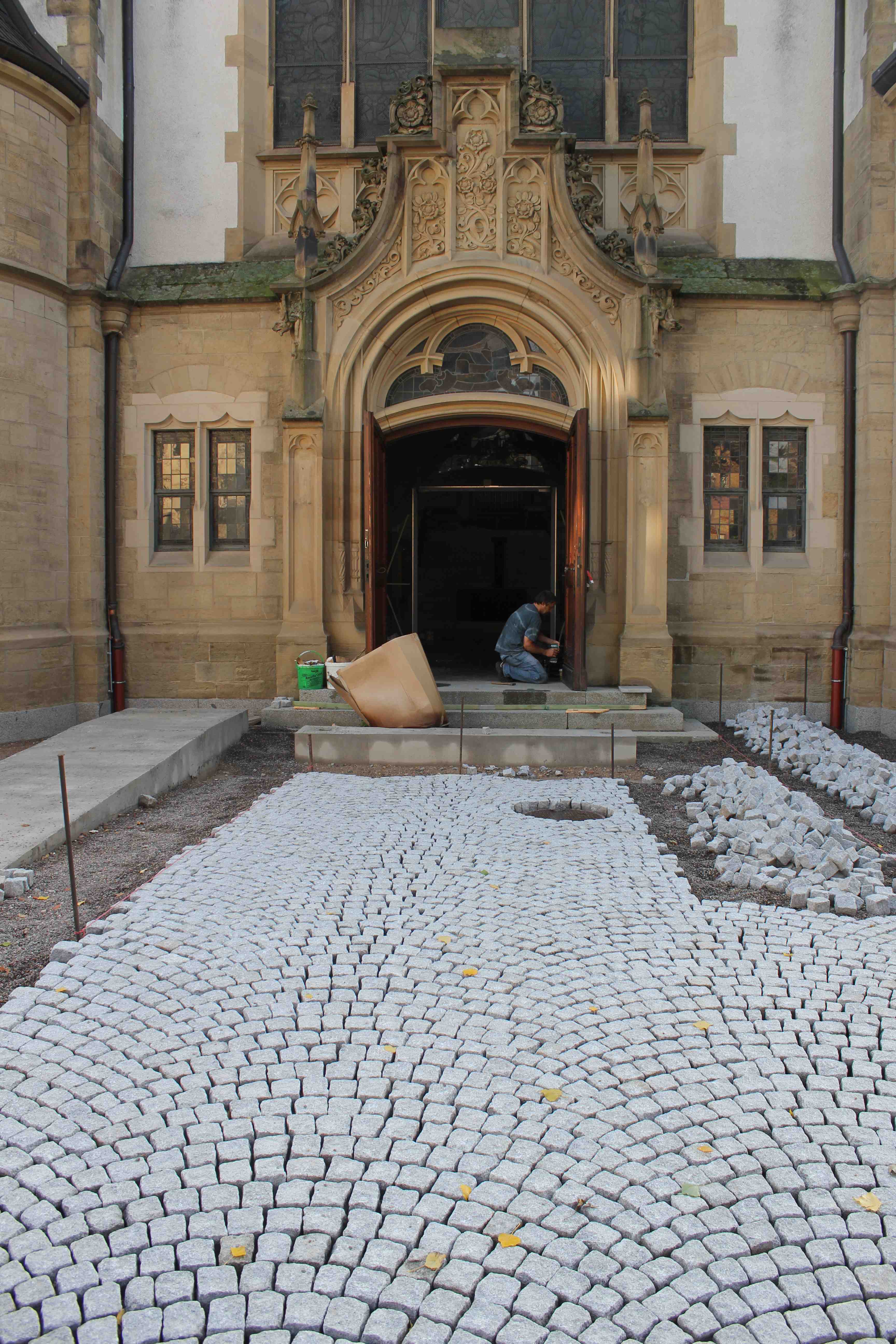 Aber allein waren wir beileibe nicht, denn die Kirche wimmelte von fleissigen Handwerkern: der Maler am Kirchenzaun, der Schreiner am Eingangsportal, der Elektriker an den Leuchten, der Metallbauer an den Lautsprechern, der Tischler an den Bänken, der Steinmetz am Taufstein und und und … es war herrlich zu sehen.