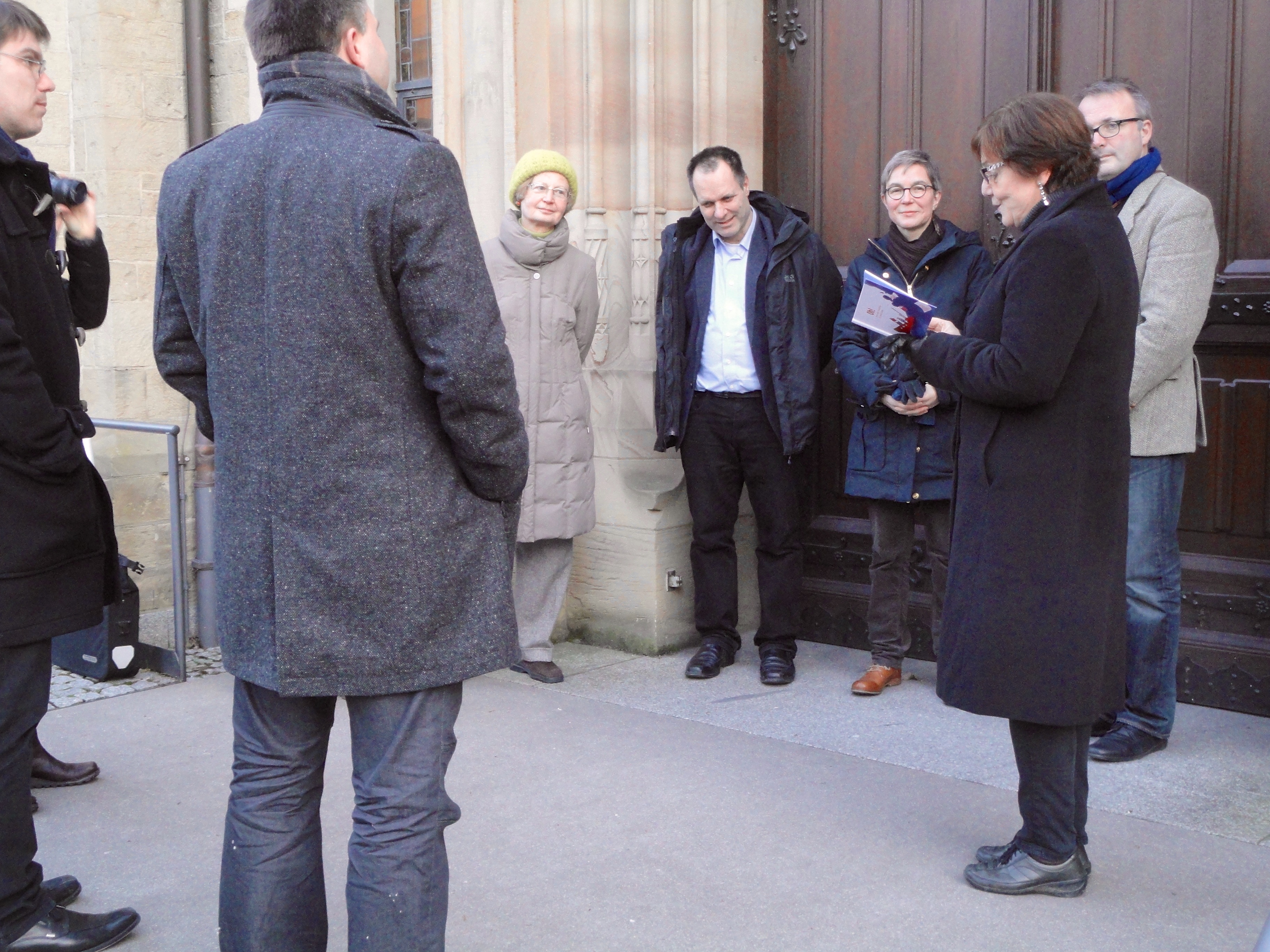 Mitglieder des ehemaligen „Baukreises“ und des Ältestenkreises (Fr. Dr. Meyer, Fr. Klein) sowie Pfarrer Garleff bei der kleinen „Zeremonie“