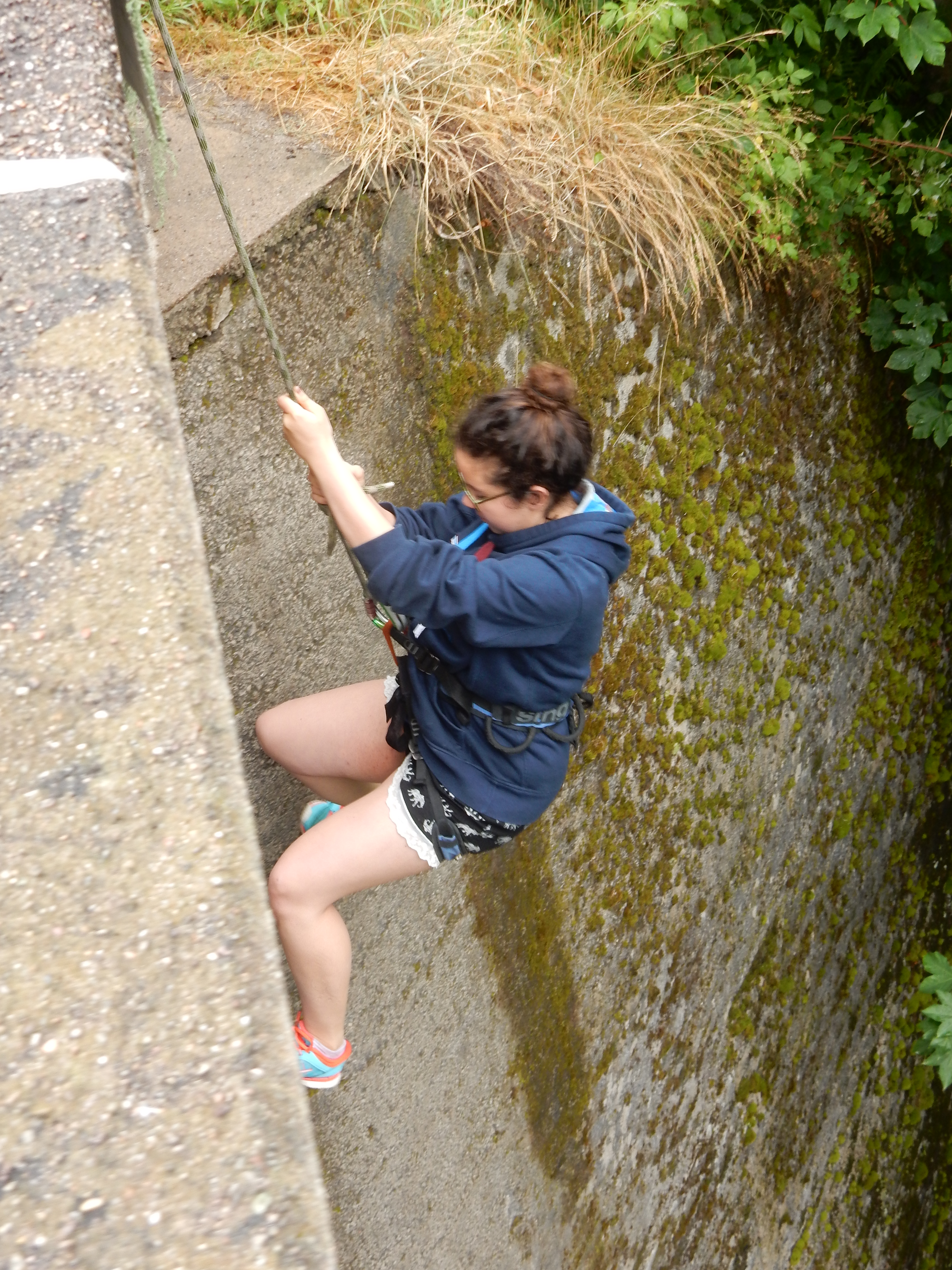 Am Seil geht es hinab in die Schlucht zur Flussbettwanderung