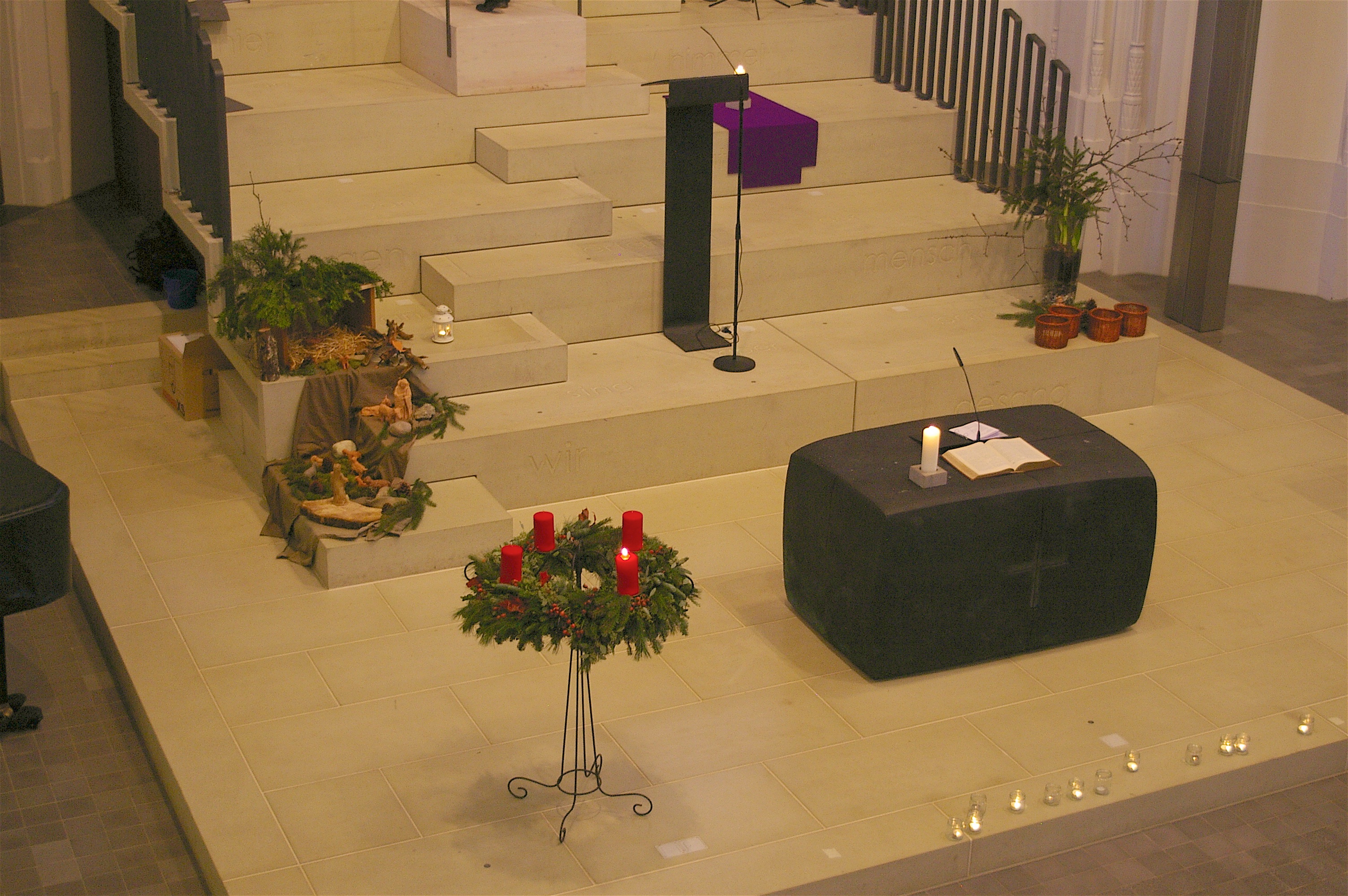 Von Woche zu Woche in anderer Form können Sie in den kommenden Adventstagen die neue Friedenskirche erleben. Der helle, weite und immer wieder überraschend gestaltete Kirchenraum bietet Ihnen die Möglichkeit, abseits allen Trubels zur Ruhe zu kommen, in Klangwelten einzutauchen, das zunehmende Licht auf Weihnachten hin wahrzunehmen und sich so mit allen Sinnen, für sich und mit anderen auf das Weihnachtsfest vorzubereiten.