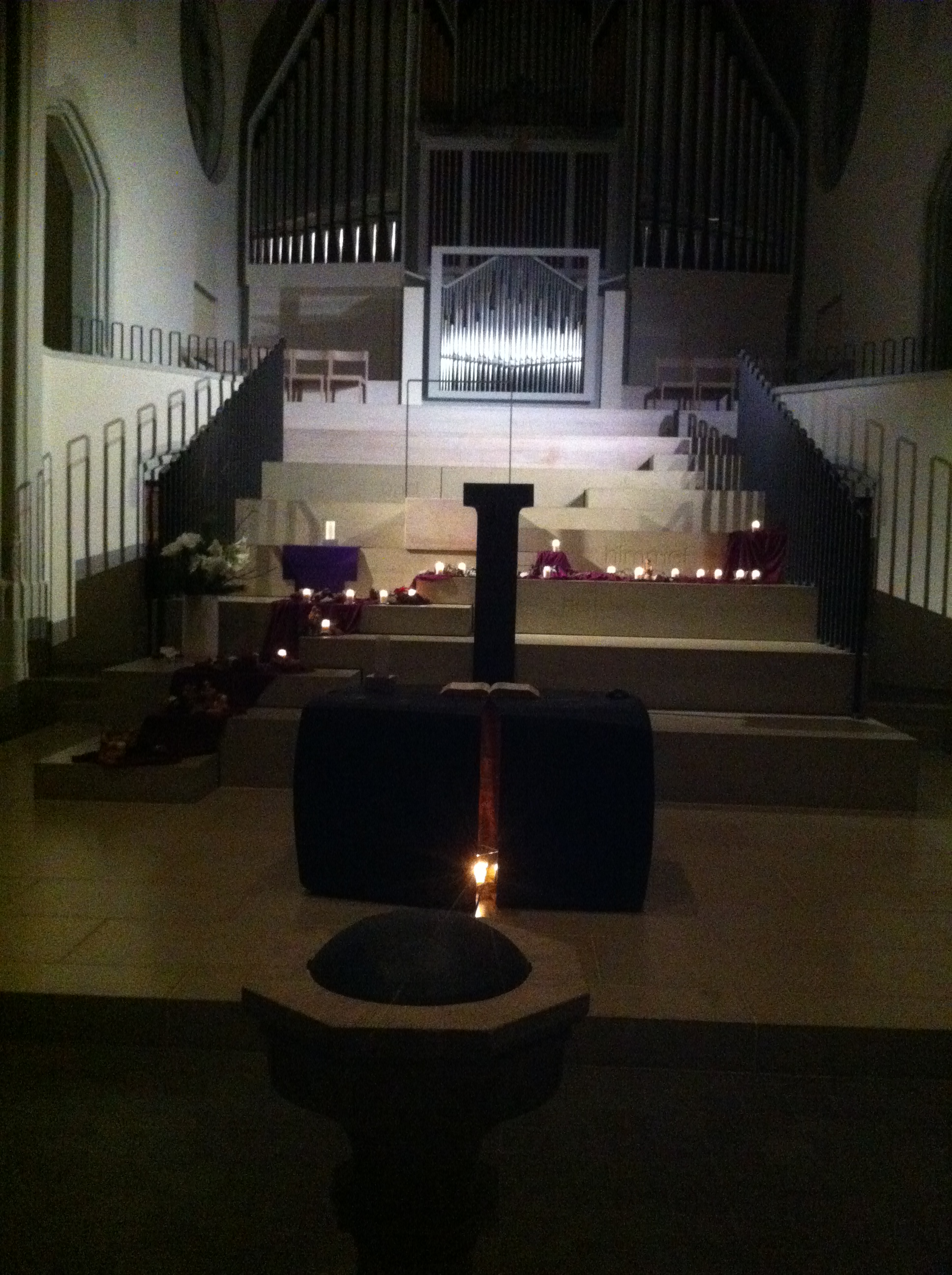 In der Friedenskirche konnte dieses Warten in der Adventszeit spürbar werden. In den vergangenen Tagen wuchs ein Adventsweg auf der Stufenanlage. Figuren näherten sich der Krippe. Das Licht hat zugenommen. Dazu waren Texte zu hören, die anregen, das Geschehen von Advent und Weihnachten zu bedenken und zu meditieren.
