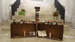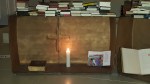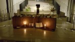 Unten werden die Bibel auf den als aufgeklapptes Buch gestaltete Altar gelegt.