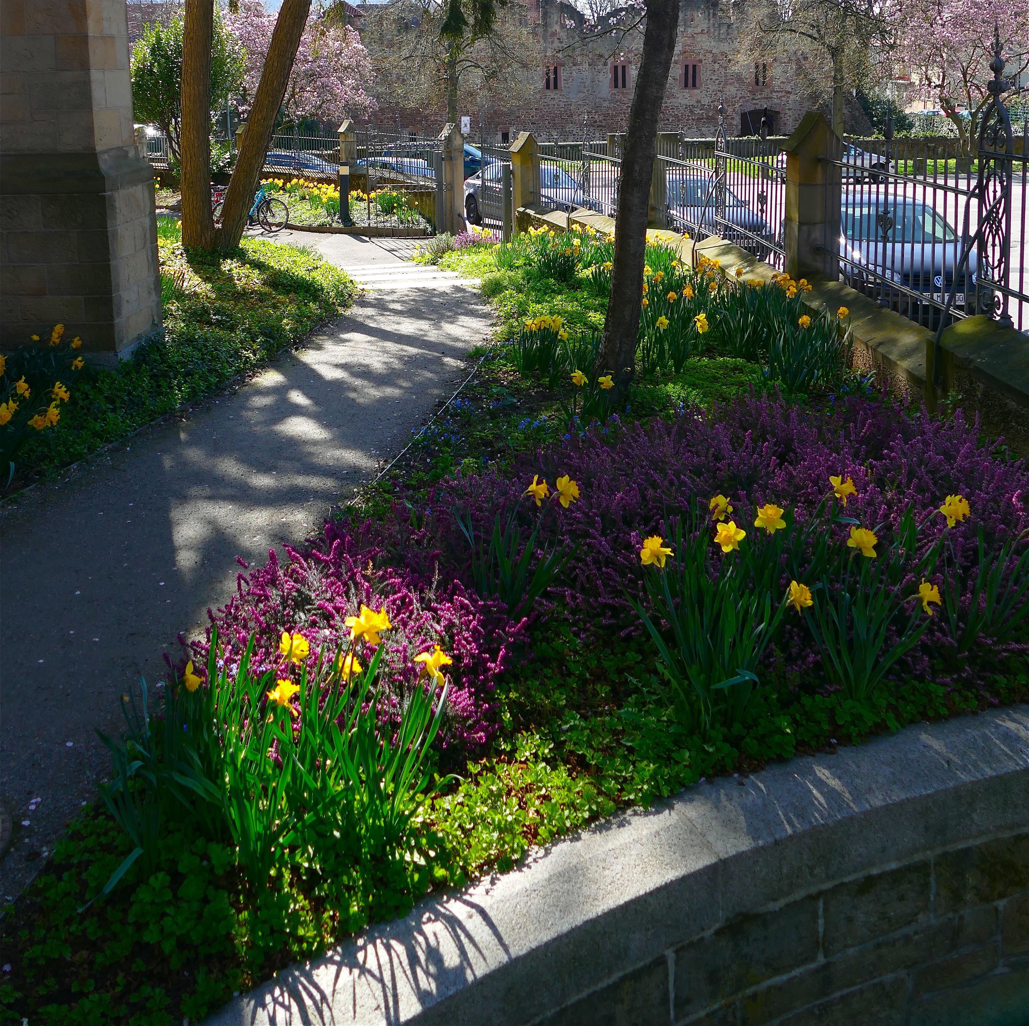 Der Frühling ist in unserer Gemeinde eingezogen. Rund um die Friedenskirche blüht es an allen Ecken und Enden. Zaubernuss und Zierkirsche, Forsythien und Osterglocken bieten ein wirklich prächtiges Bild. Dieses Blütenmeer sieht so aus, als sei es von alleine und gewissermaßen über Nacht um unsere Kirche entstanden. Doch dies stimmt nur zum Teil: