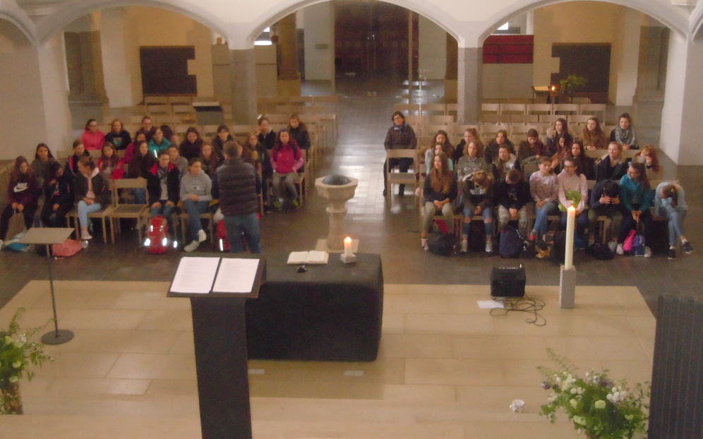 Bei der Nachbesprechung des Aktionstages im Unterricht wurde deutlich, dass es neben der inhaltlichen Gestaltung den Schülerinnen besonders gut gefallen hatte durch die bunte Durchmischung der Gruppen mit Mitschülerinnen der anderen Klasse bzw. der anderen Konfession zusammenarbeiten zu können. Zudem waren sie von dem hellen Innenraum, der freundlichen Atmosphäre, sowie der stufenartige Treppenanlage der Friedenskirche angetan.