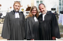 auch an diesem Gruppenfoto mit Hans Jürgen Holzmann, Pfarrer der Johannes-gemeinde, Martina Reister-Ulrich, unsere Pfarrerin der Friedensgemeinde sowie Pfarrer Anselm Friederich-Schwieger, Pfarrer der Jakobusgemeinde gut erkennen kann.
