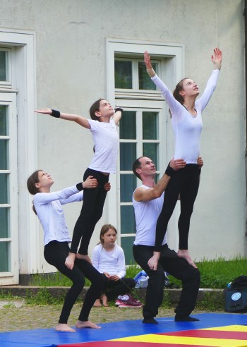 Anschließend führte das Zirkusteam mit akrobatischen Bildern zum Thema Himmelfahrt ein: Christus steigt auf, fliegt davon in den Himmel. So wie sie es vorführten, vermittelte e
