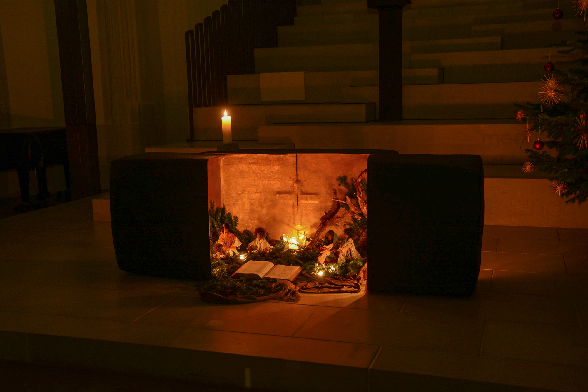 Der Altar wird zur Krippenhöhle und über der Kanzel leuchtet der Stern. Aus dem Chorsaal tönen seit Tagen die Weihnachtslieder, die Kinder proben für das