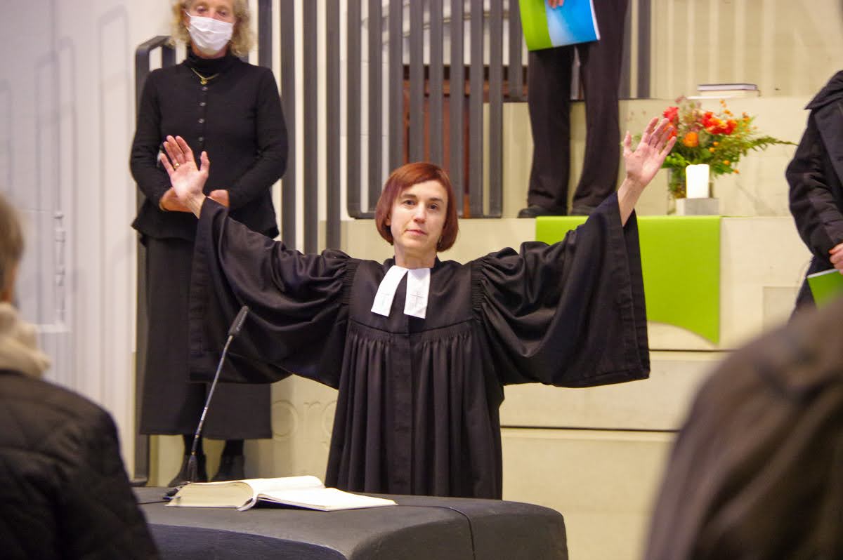 Um 19:45 Uhr war es am Buß- und Bettag soweit. Freudestrahlend trat Schuldekan Dr. Beate Großklaus im Wahlgottesdienst ans Mikrofon und verkündigte die frohe Nachricht: „Ich freue mich, Ihnen mitteilen zu dürfen, dass die neue Pfarrerin der Friedensgemeinde Therese Wagner heißt.“
