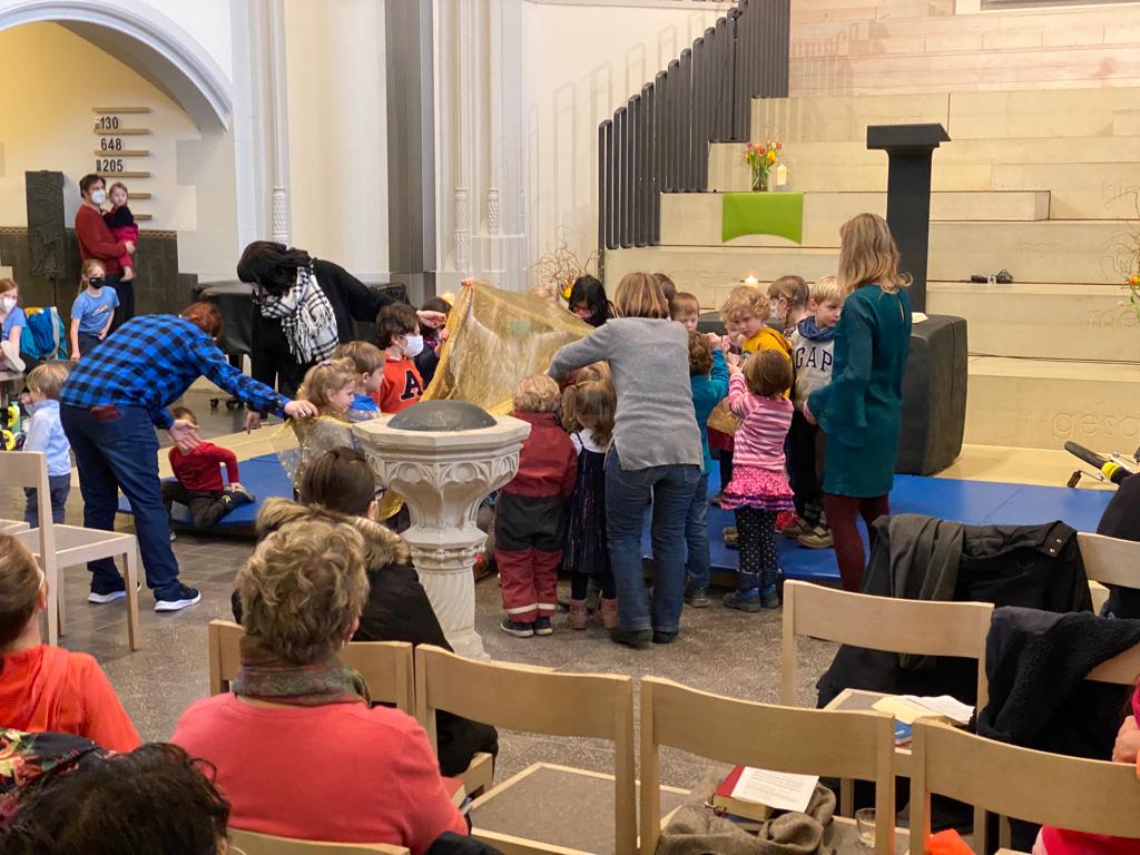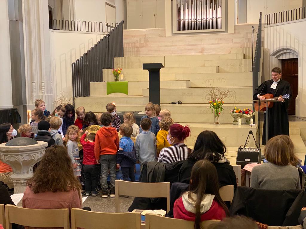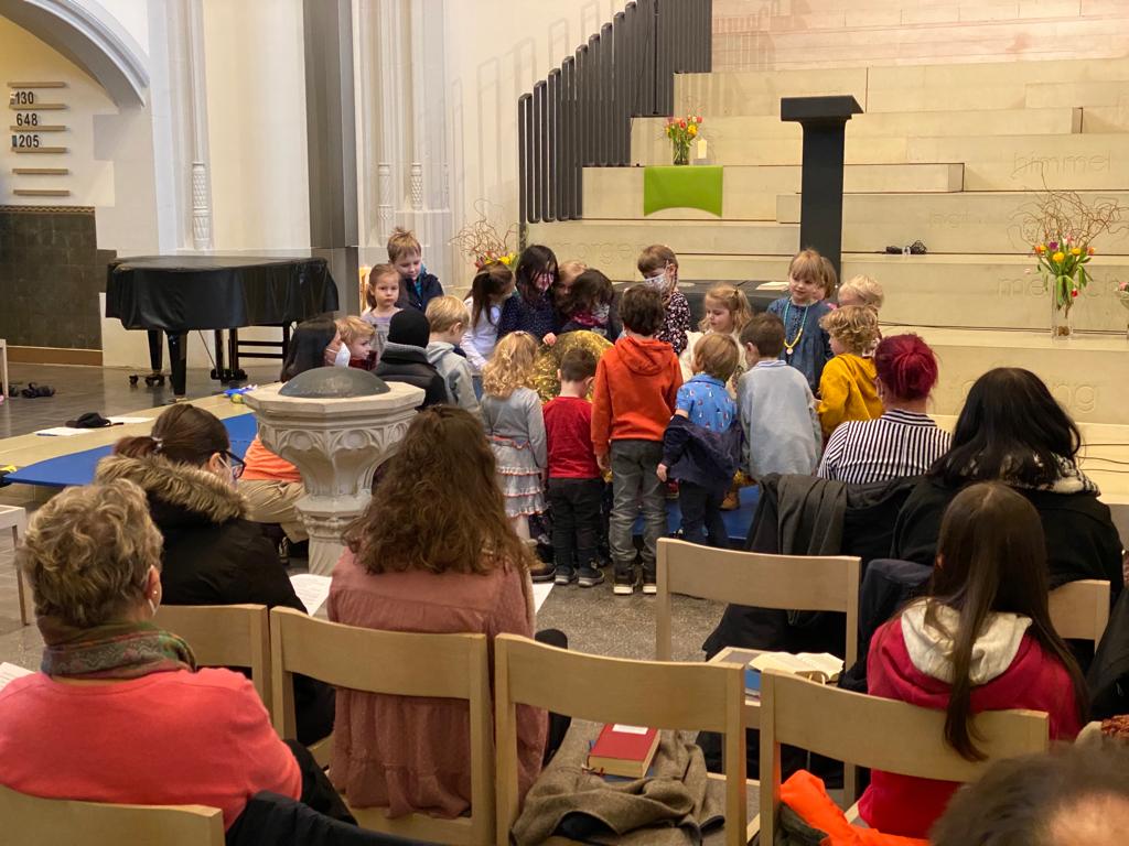 Mit einem lebendigen Familiengottesdienst wurde Christine Greil nach dreieinhalb Jahren als Leitung unseres Kindergartens in der Kriegsstraße verabschiedet und Sabina Mandzukic als neue Kindergartenleitung eingeführt.