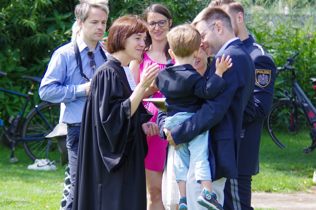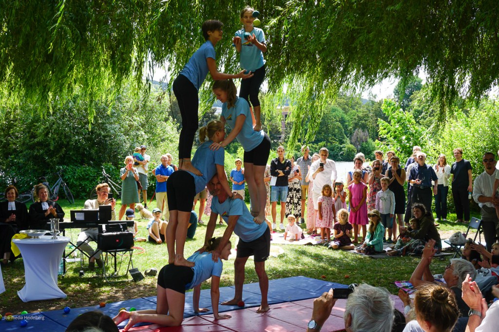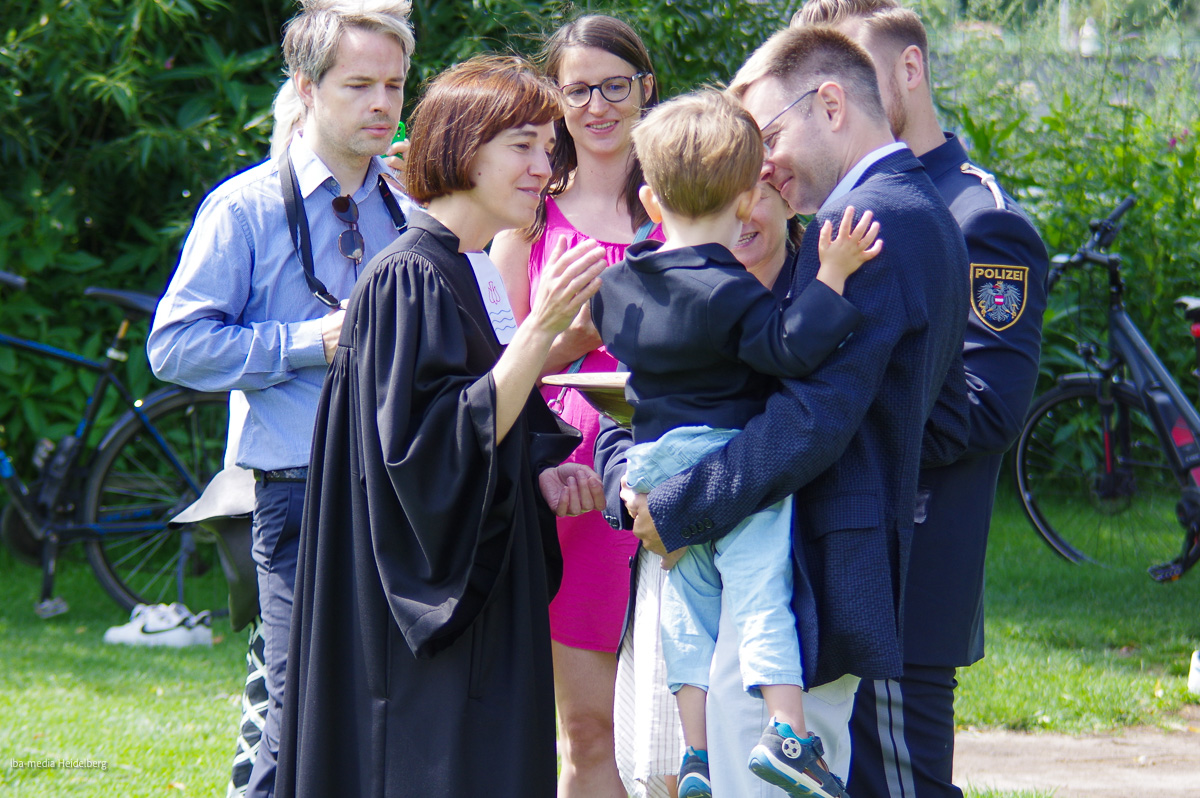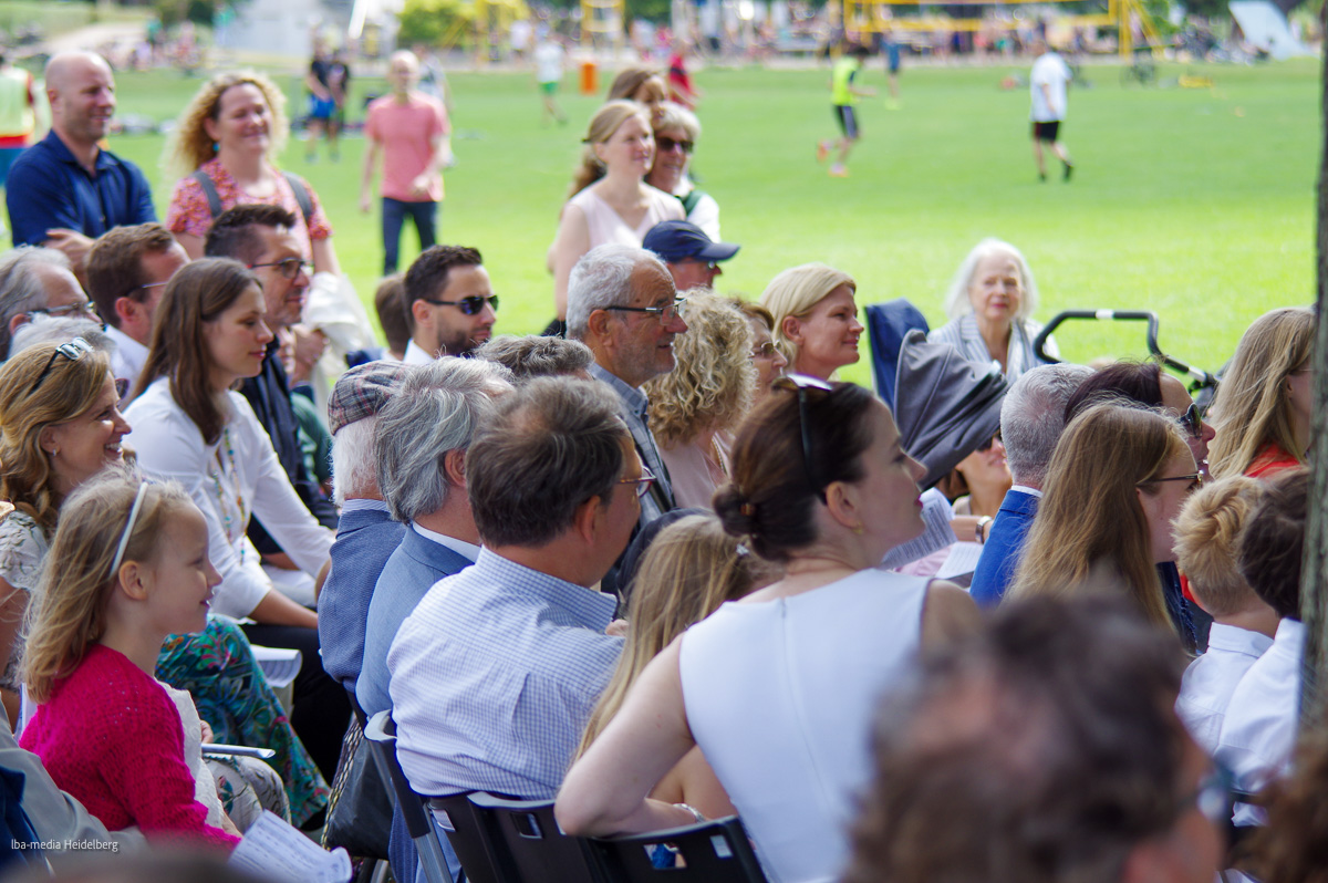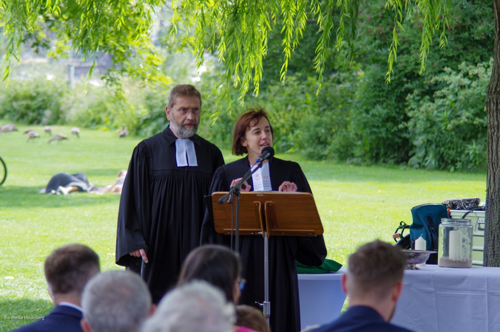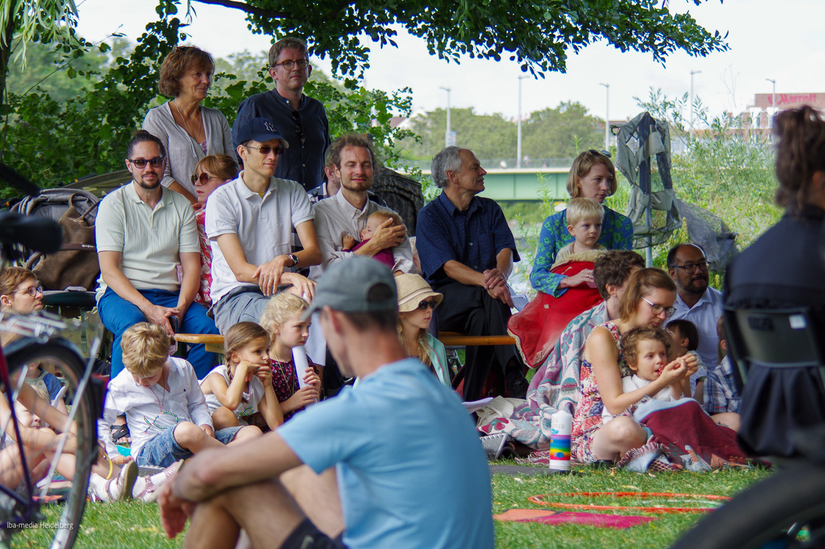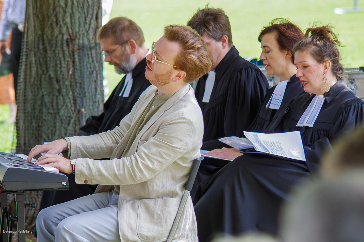 Sieben Wochen nach Pfingsten steht im liturgischen Kalender die Feier der Taufe besonders im Mittelpunkt. Schon in einer alten urchristlichen Kirchenordnung, der so genannten Didache, gibt es die Weisung, dass man in fließendem, lebendigem Wasser taufen soll. Deshalb zogen die drei evangelischen Gemeinden im Heidelberger Norden ans Neckarufer und feierten ein großes Tauffest. Für die Tauffamilien, Freundinnen, Freundinnen und Angehörige war es an einem sonnigen Sonntagmorgen im Schatten eines großen Baumes ein fröhliches, ungezwungenes Zusammensein.