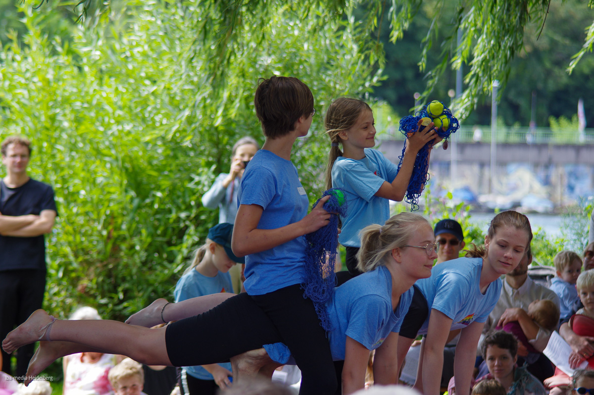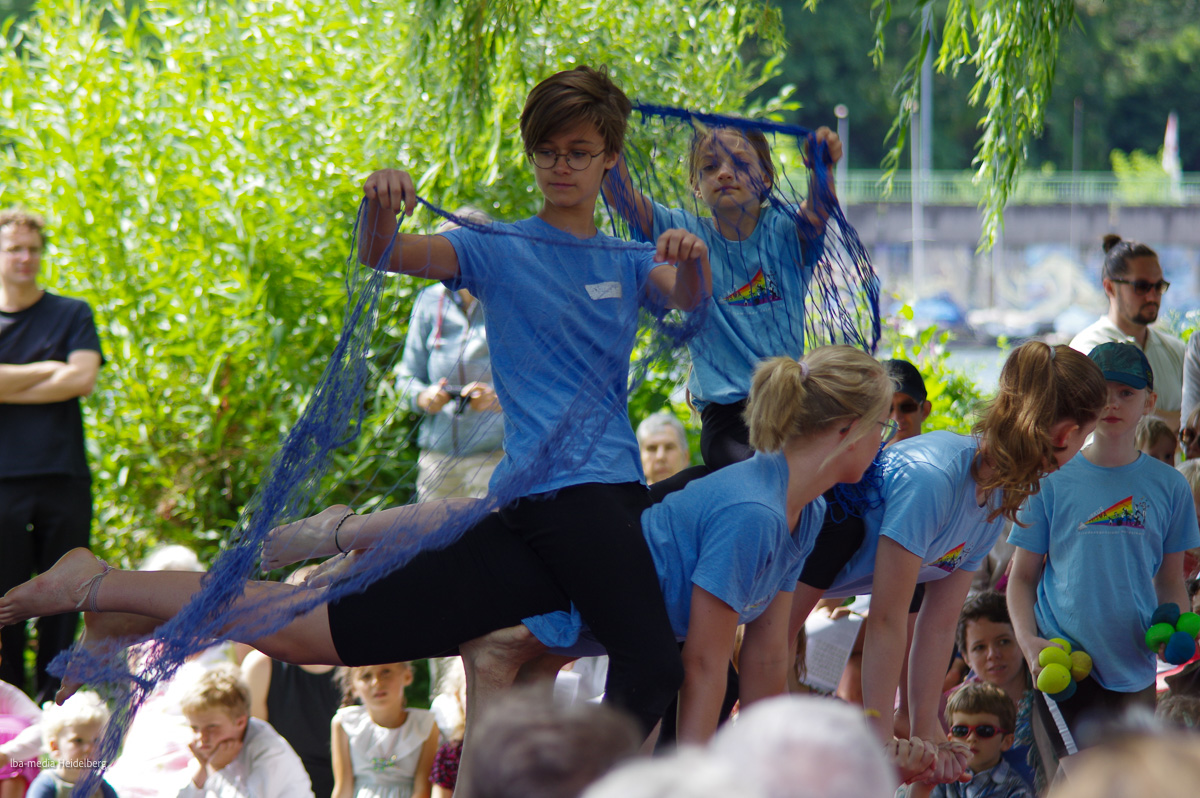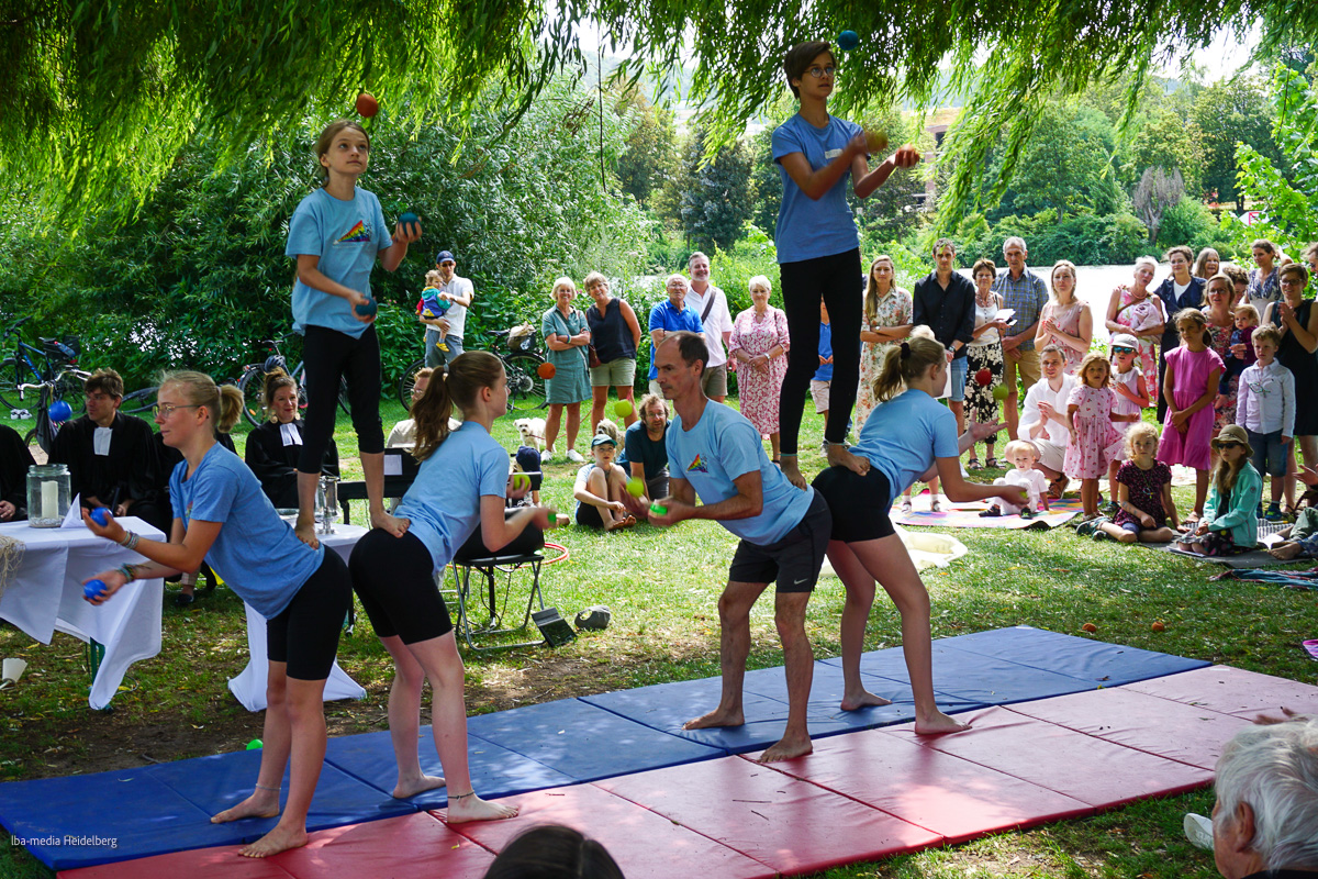 Die biblische Lesung der Erzählung von dem großen Fischzug der Jünger Jesu wurde anschaulich vor Augen geführt von den Artisten des Zirkus Prisma. Die Jungen und Mädchen sorgten auch im weiteren Verlauf des Tauffestes für spannende Szenen.