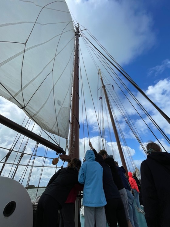 Skipper Marc und Matrosin Laura werden uns die nächsten Tage über das IJsselmeer und die Nordsee leiten, doch ohne unser Anpacken kommen die beiden nicht weit. Alle sind gefragt mitzuhelfen, die Segel zu hissen.