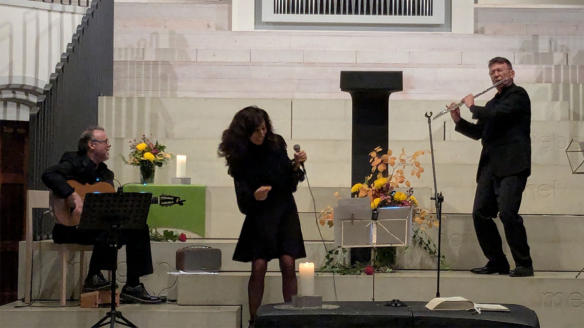 Musikalisch wurde der Abend von den drei argentinischen Musikern Willy Burgos (Gitarre & Arrangements), César Villafane (Querflöte) und Leila Riva (Gesang) gestaltet. Mit ihren argentinischen Klängen – mal lebendig und temperamentvoll, mal zart und verträumt – schufen sie eine Atmosphäre, die zwischen Leichtigkeit und Tiefe schwebte. Die Musik verband Menschen, füllte den Raum mit Wärme und trug die Botschaft des Abends weit über Worte hinaus.