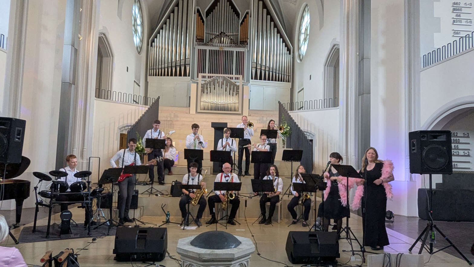 Das Debütkonzert der Bigband „La Boom“, die sich im November 2025 in der Friedensgemeinde gegründet hat, war ein voller Erfolg. Mit dem Titel „Ich war noch niemals in New York“ präsentierte die Band unter Leitung von Caro Nelson ein abwechslungsreiches Repertoire aus Jazzklassikern, Pop, Funk und Swing und sorgte für eine tolle Atmosphäre. Rund 150 Besucher zeigten sich begeistert von der mitreißenden Musik.