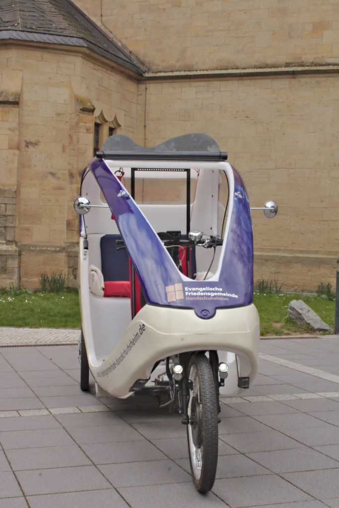 Ein ungewöhnliches diakonisches Projekt der Friedensgemeinde. Wenn Sie nicht mehr so gut zu Fuß sind, holen die ehrenamtlichen Fahrerinnen und Fahrer Sie mit unserem luftigen Gefährt ab. Oder Sie unternehmen mit uns eine Spazierfahrt durch Handschuhsheim. Zum Beispiel an Orte, die Ihnen wichtig sind. Rufen Sie an bei unserer Rikscha-Zentrale: